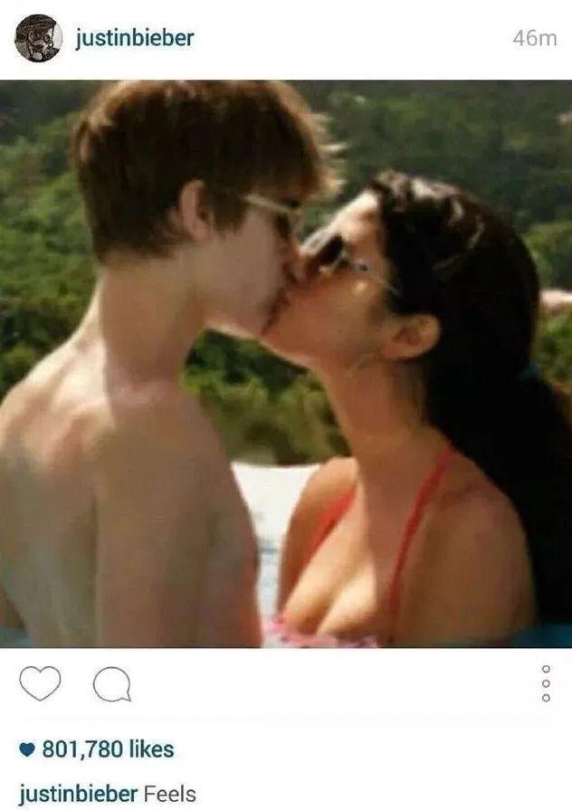 2016年3月,比伯在ins上发了他和傻脸娜的甜蜜接吻旧照。