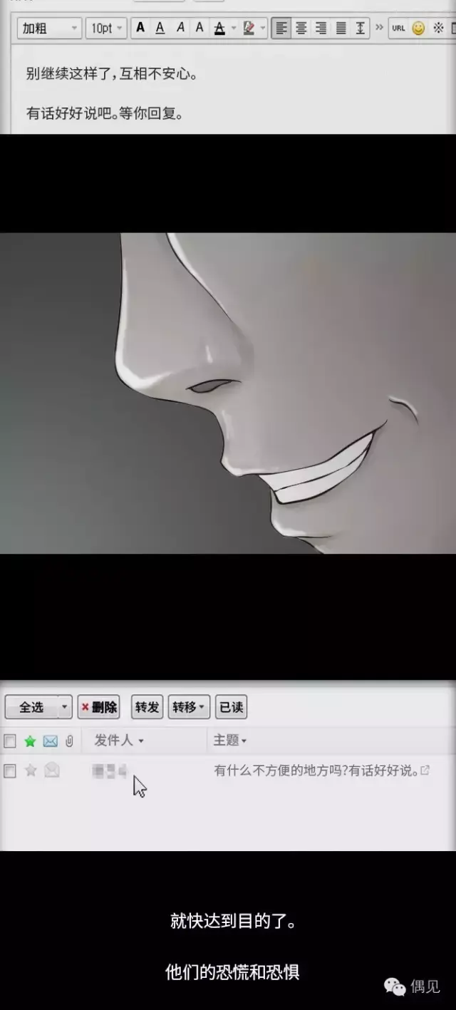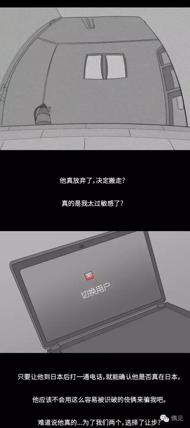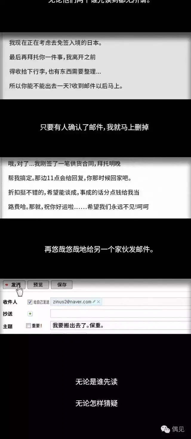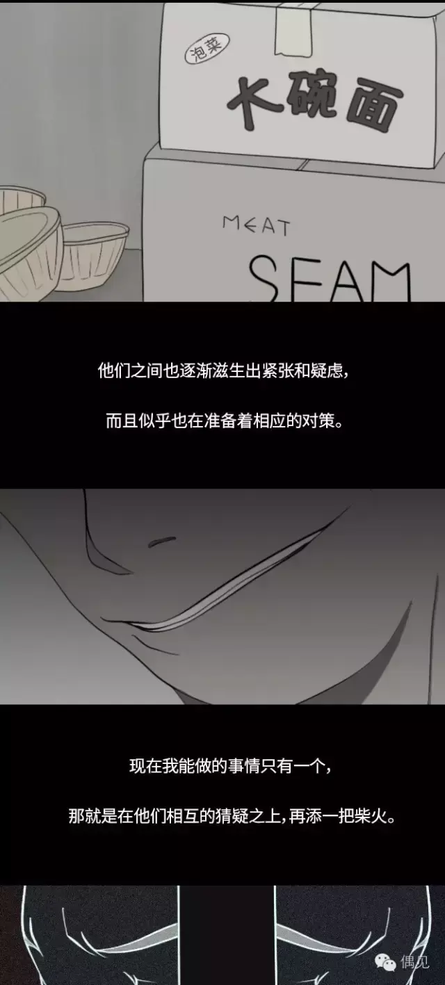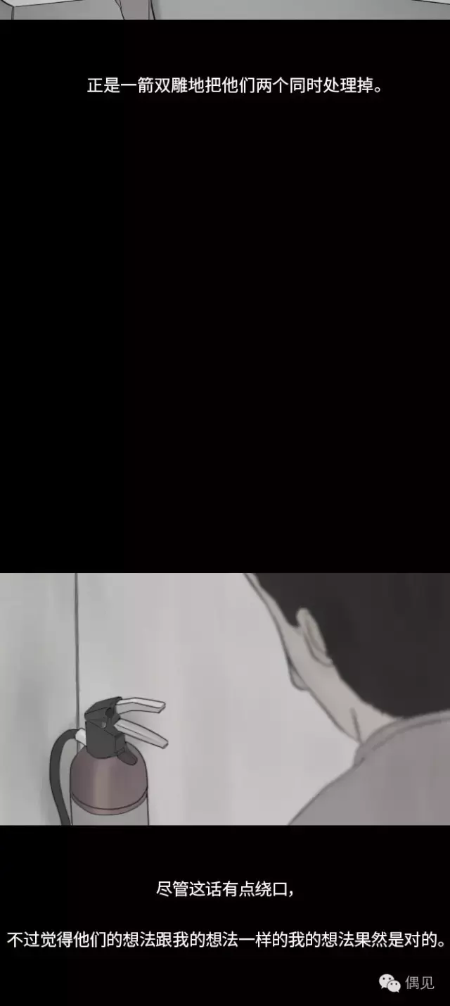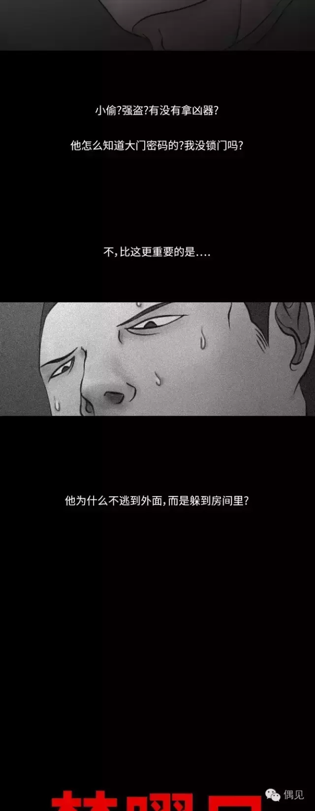 马丰荣——个人认为,从上一话可以看出,本体拿的是pepper spray这个是防狼喷雾,并不是毒气。然后从这一话的图片可以看出来,开了门之后两个人的手指都没有按在喷雾的按钮上而是看见了之后就倒下了。如果说分身本体见面的话分身必死,那么主体有可能没死,倒在地上没动是因为他从日常的思维或者共享的思考中察觉到了第三个人的存在,想用这种引蛇出洞的方式用本话里面装逼的分身的话说“给他们两个都除掉”而且通过之前的文章多次重复,他的思想就是另外两个的思想,所以他可以察觉出第三者的存在。但是主体和分身见面之后都会死的话,那为什么第二个分身还敢在他们都倒下的时候去准备处理尸体呢。。。所以就假设是主体和分身见面后主体没事,分身会死,而这最后就是反转的反转,分身毕竟是分身,还是没有主体的鸡贼。