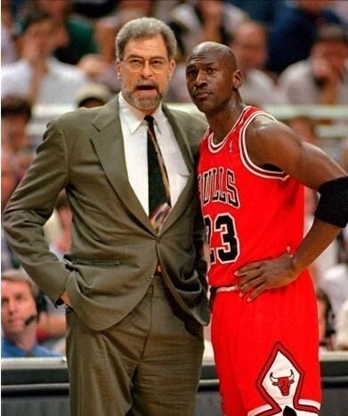 1987年,菲尔·杰克逊(PhilipJackson)来到芝加哥公牛队作为助理教练辅佐道格·科林斯,并在1989年正式转正。那一年,杰克逊把三角进攻战术移植到了公牛队,并且在迈克尔·乔丹与斯科蒂·皮蓬的帮助下获得了巨大的成功。1990-1993年,杰克逊率领公牛完成三连冠。1993赛季结束后,乔丹宣布退役。经过两年的沉寂,1995年,乔丹宣布复出,重返公牛队。1996-1998年,杰克逊再次率队取得三连冠,并在1996年得到年度最佳教练奖,当年他带领芝加哥公牛队取得72胜10负。