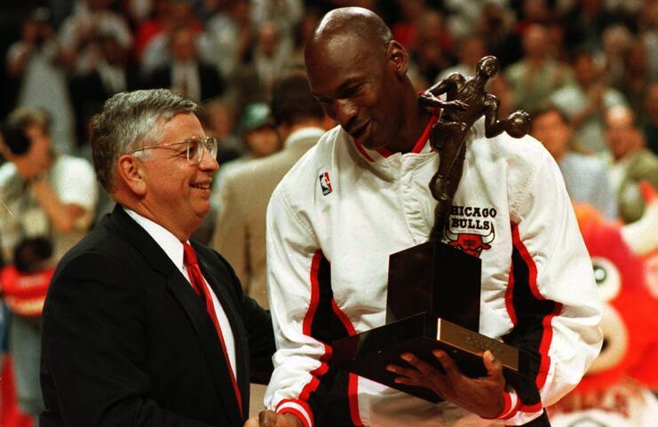 1995-96赛季,乔丹场均得到30.4分,率领公牛取得了72胜10负的战绩。乔丹在这一个赛季囊括了常规赛、全明星赛和总决赛三项MVP,之外仅有威利斯-里德能完成这一壮举。