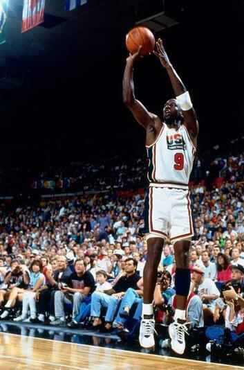 乔丹跟随国家队参加过1984年洛杉矶奥运会和1992年巴塞罗那奥运会,两次均以全胜战绩夺取金牌。