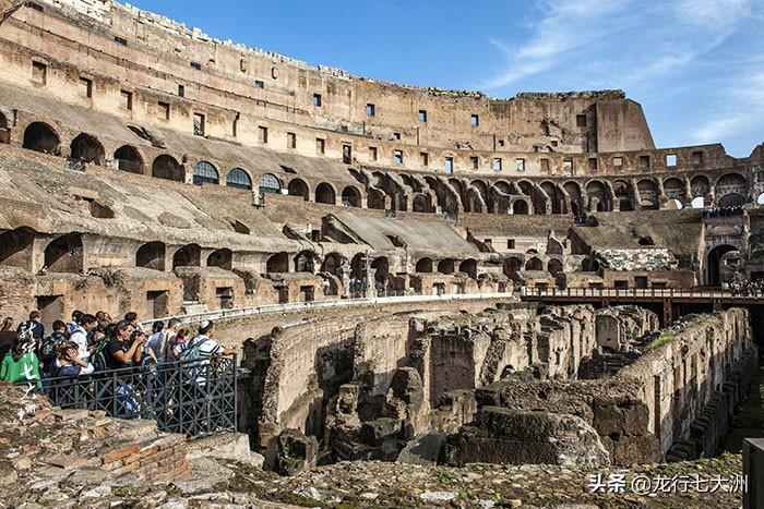 罗马斗兽场建于公元72年-82年间,是在尼禄金宫的废墟上修建而成,周长527米,内部长轴188米,宽轴155米,竞技场可容纳5万观众,内部观众席分成六级:第一级是元老贵族的席位,第二级是骑士、贤达和社会商人的席位,三到五级是平民席位,第六级是没有座位的站席。