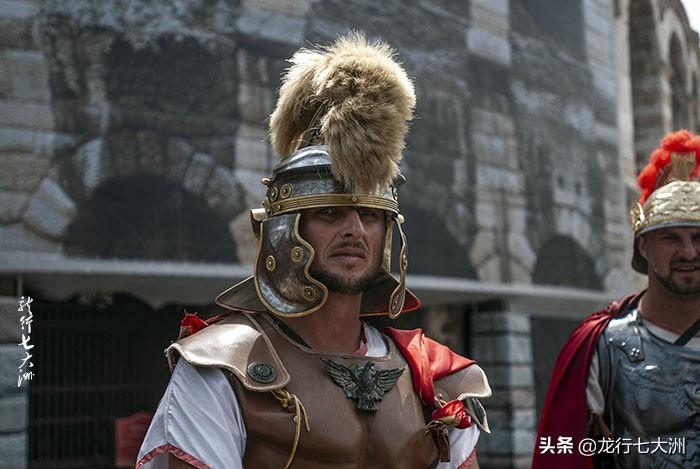 维罗纳竞技场外化妆成罗马角斗士的演员