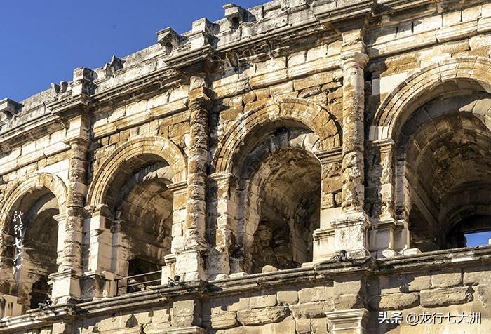 尼姆竞技场外立面希腊柱式和罗马拱门建筑结构的融合