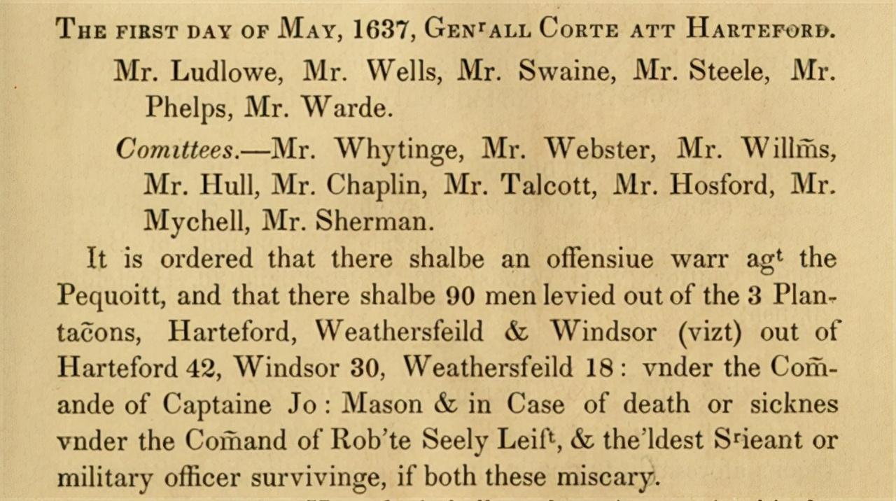 “领导英国定居者袭击佩科特人和神秘堡而闻名,有效地结束了康涅狄格州东南部佩科特人部落的霸权。”