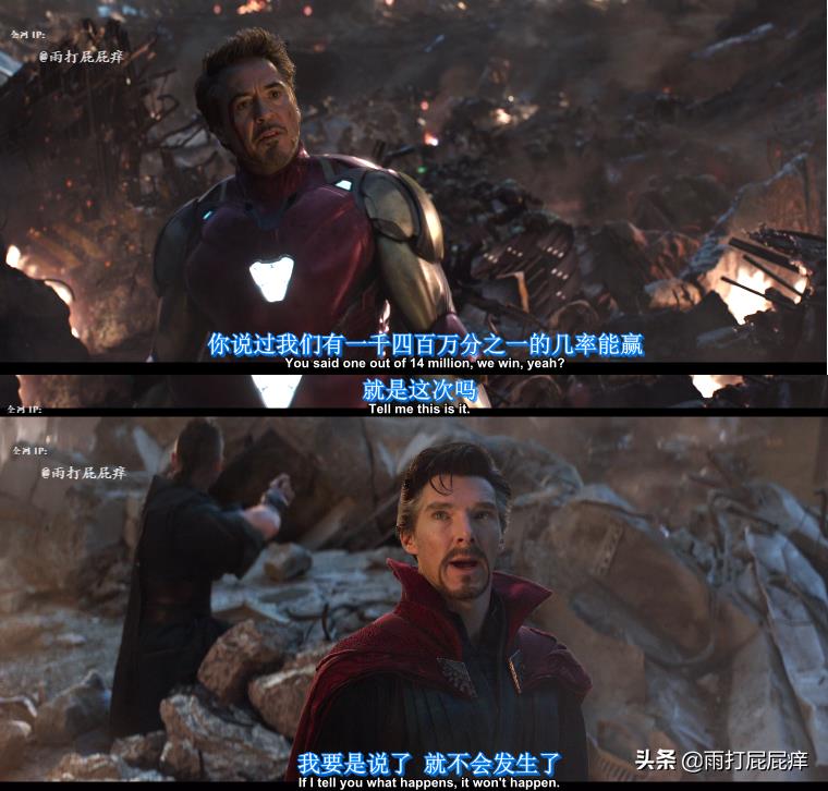 要知道1400万的可能性中是包括了所有的结局,自然也包括类似于:星爵没有揍醒灭霸;斯特兰奇没有交出时间原石;或是斯特兰奇在终局之战中直接迎战灭霸,甚至是惊队或者其他人打响指的众多版本。之所以是实际的现实中没有发生这一切,那必然是这些版本并不是那唯一胜利的可能。我们所能想到的所有战斗方式,斯特兰奇其实在窥探的过程中早已完成了试验,并且最终被否定。