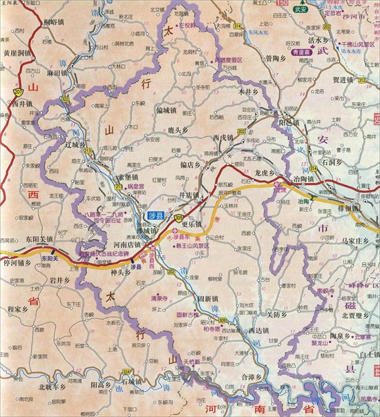 河北涉县隶属于河北邯郸市,位于河北省西南部、太行山东麓,地处晋冀豫三省交界。东与河北武安市、磁县比邻;西与山西黎城、平顺县相连;南与河南林州市、安阳县隔漳河相望;北与山西左权县接壤。地理位置十分优越。