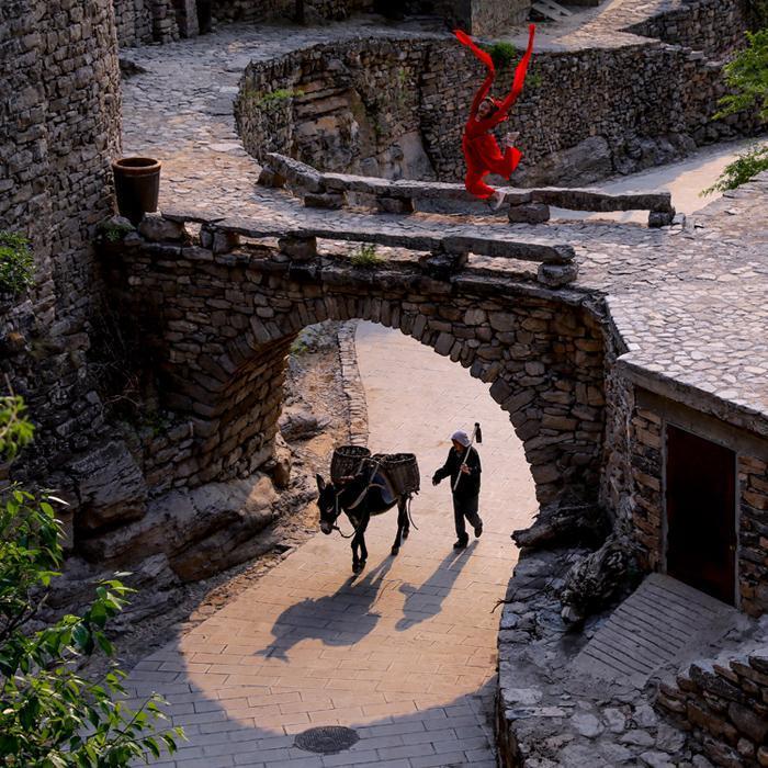 房屋院落依山就势而建,前筑高堰,后凿山崖。石头房一座接一座,石头路一条接一条,峭壁嫁接峰崖,石堰续高悬壁,一崖一家,一峰一户,院搭院,院叠院,房搭房,房赶房,参差错落,构成一座“悬崖石堡”,被称为“太行山小布达拉宫”。