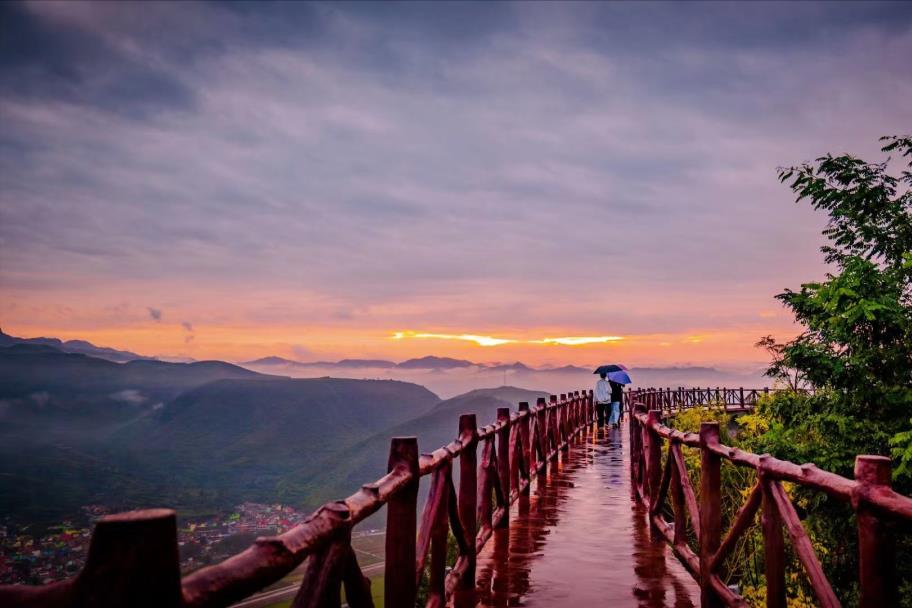 河谷风光尽收眼底,远处峰峦起伏,让人不由心旷神怡