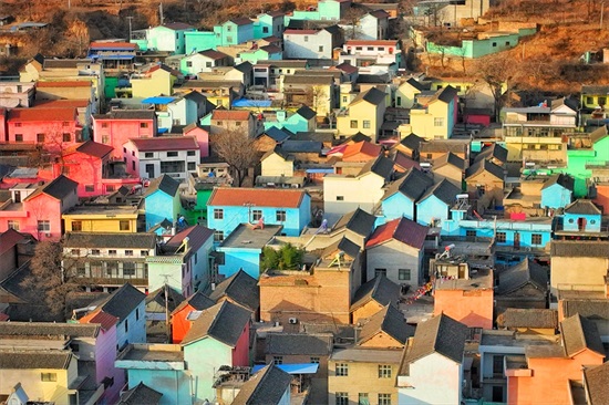 庄上村位于涉县河南店镇境内,坐落在234国道西侧。西靠太行山,东依清漳河,山川秀美,风景宜人。由于全村所有农户外墙,全部涂上了五彩斑斓的油彩,唯美浪漫,又被称为“七彩村庄”。置身于此,仿佛人们生活在童话世界中一般。