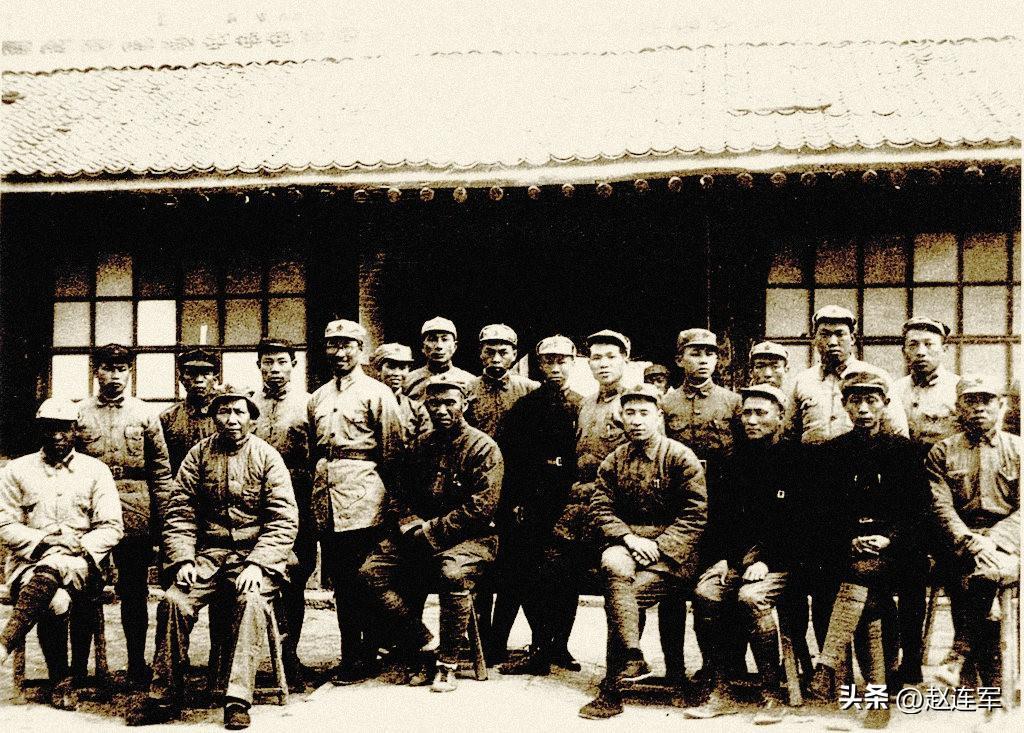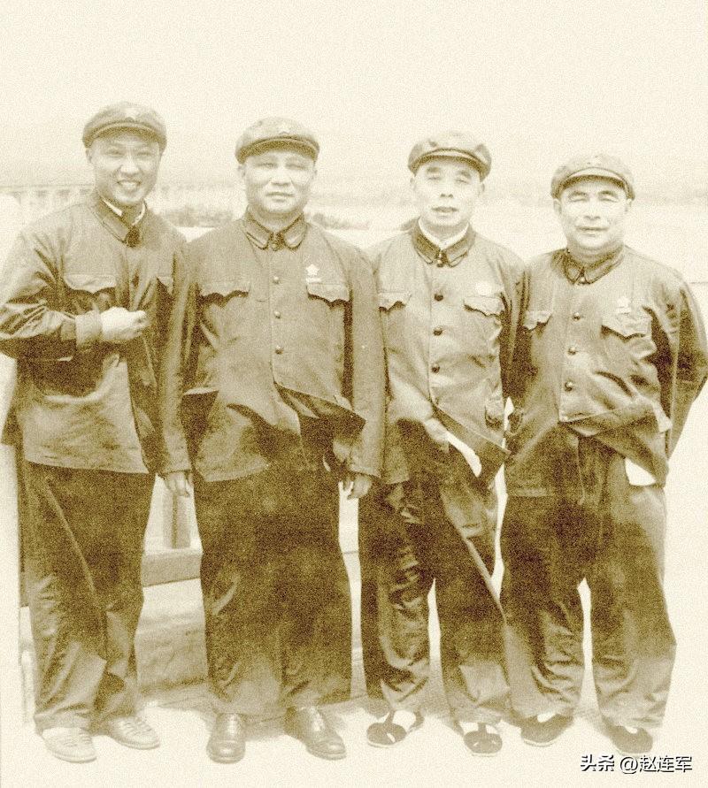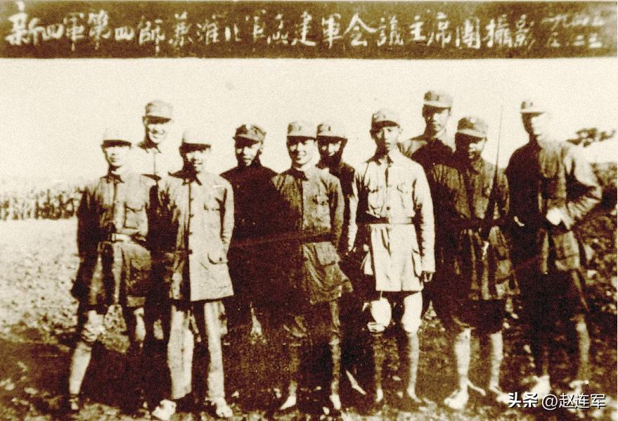 新四军第四师部分领导干部合影。中排左一张爱萍,左三赖毅。