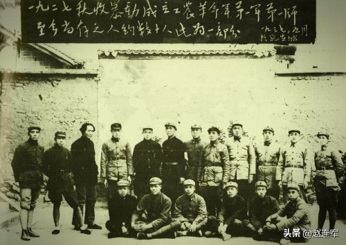 参加秋收起义部分同志在延安合影。前排左四为赖毅;后排左三毛泽东、左十二贺子珍。