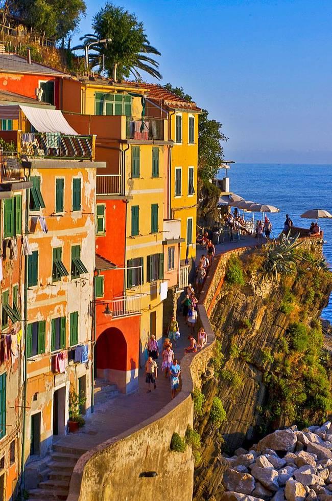 五彩斑斓的房子,蔚蓝无垠的大海,雄奇陡峭的悬崖,狂野而茂密的橄榄林、葡萄园与仙人掌,全部都像一个缤纷的梦境一样,置身其中,这个恍若隔世小岛,带给你一定是一种震撼的美。这里,便是坐落在意大利古里亚大区拉斯佩齐亚省海沿岸的五渔村。