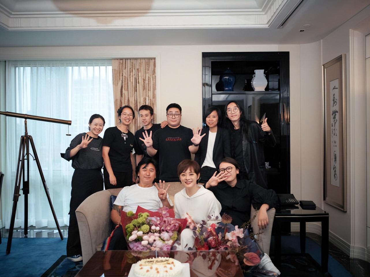 晒出的照片里,孙俪被众人围在中间,她位居C位,开心得不得了,大家纷纷对着镜头比划数字“4”,好应景。