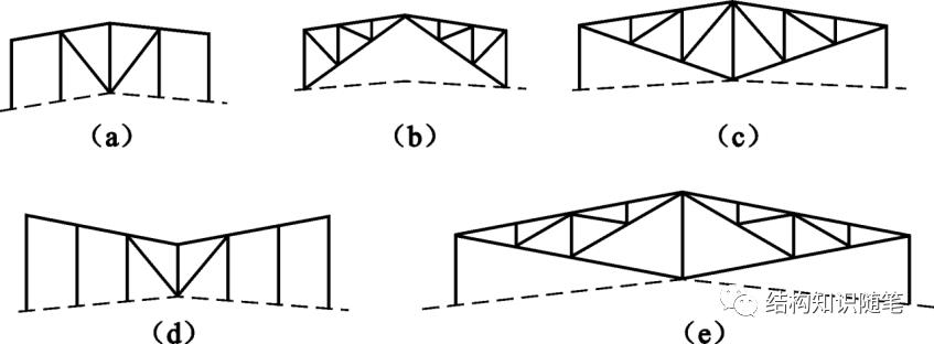 纵向天窗则需单独设置天窗架,常见的几种天窗架形式如图所示。