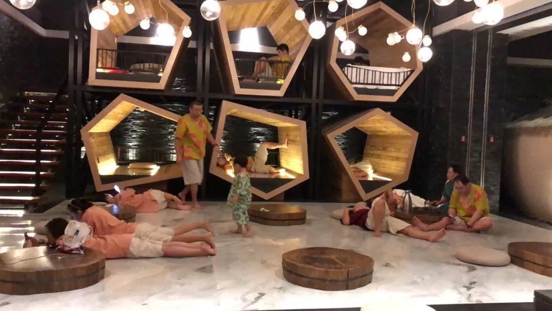 一层涵盖温泉洗浴、温泉水疗区、儿童成人戏水区等