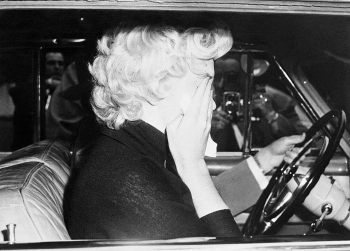 而这张照片是玛丽莲在离开新闻发布会时拍到的,在宣布和丈夫乔·迪马吉奥离婚后。
