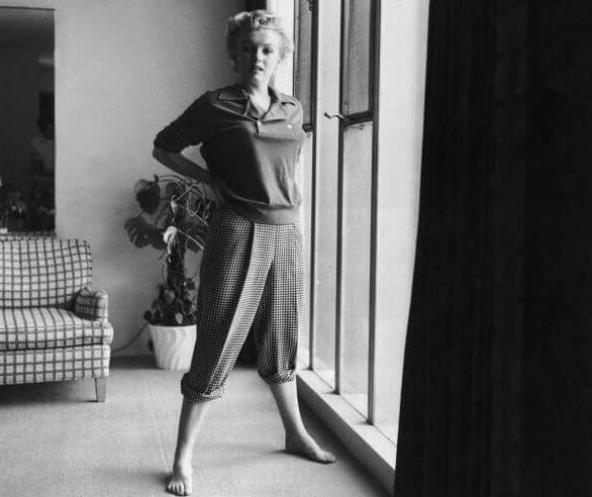 20世纪50年代开始,玛丽莲的杂志封面和广告牌已经遍布全球,杂志上的她总是穿着华丽的服饰,画着精致的妆容。但是玛丽莲梦露也在家里记录了这真实的一面,她穿着格子裤和宽松的运动衫,赤脚站在家里的窗前。