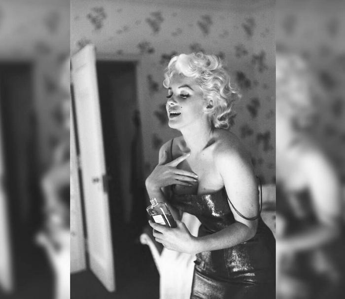 然而事实是在好莱坞还有一位年轻女性,迪克西·埃文斯,长得很像梦露。她是洛杉矶玛雅剧院的脱衣舞女,经常被误认为是梦露女士,于是她还多次乔装打扮成玛丽莲梦露,并且和许多美国上层富豪做过“交易”,尤其是画面中这个造型