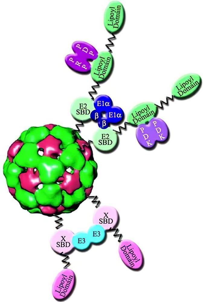 丙酮酸脱氢酶复合酶系的结构非常复杂,其大分子组装形式和结构与功能之间的关系仍然需要进一步探索。目前,尽管已经使用了多种技术手段对其进行了结构解析,如X射线晶体学、核磁共振、电子显微镜等,但解析出完整的复合物结构仍然存在困难。