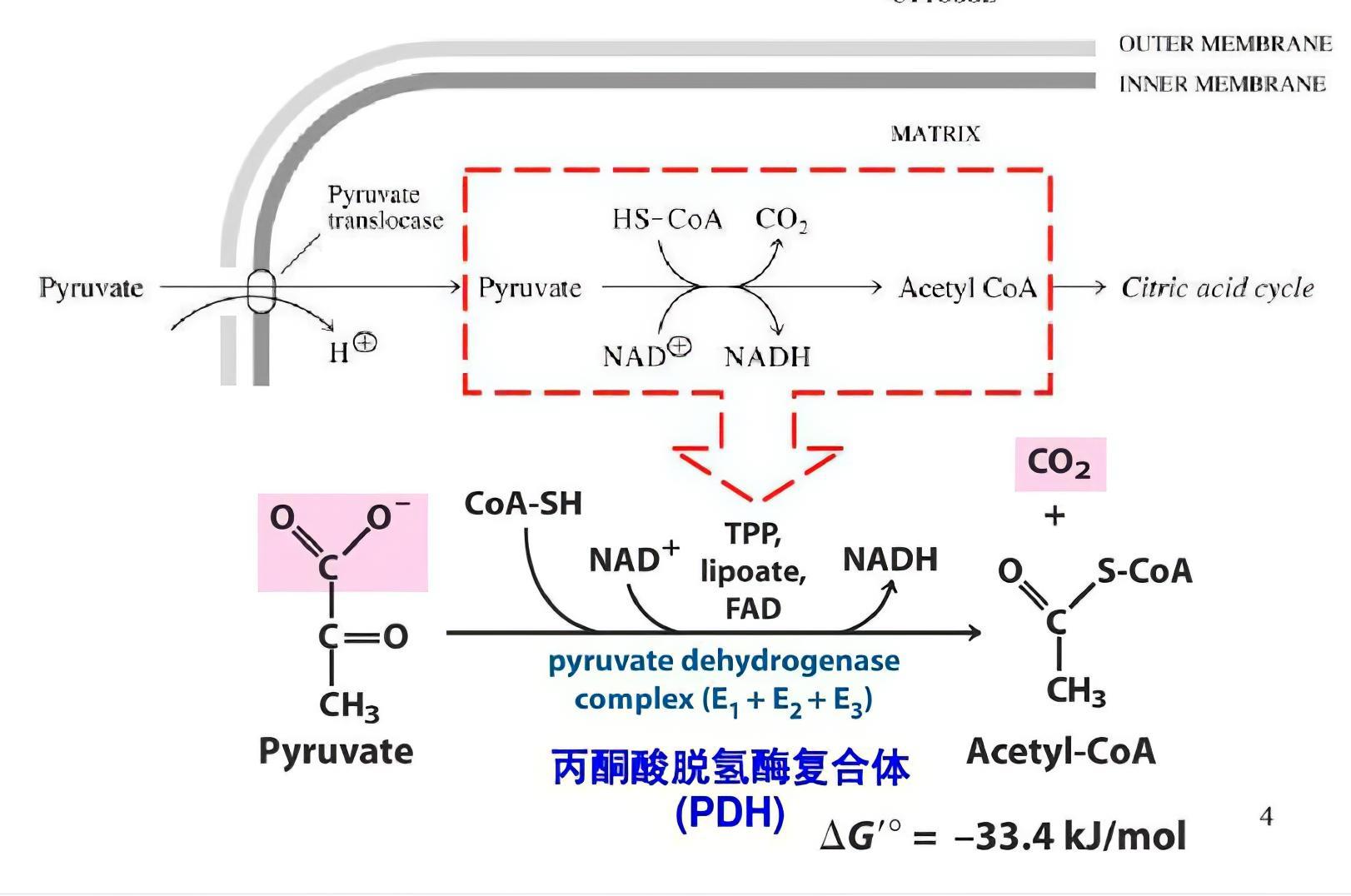 丙酮酸脱氢酶复合酶系是一种由多个酶组成的复合酶系,其催化作用是将丙酮酸转化为乙酰辅酶A,从而参与到三羧酸循环和脂肪酸代谢等生物代谢途径中。