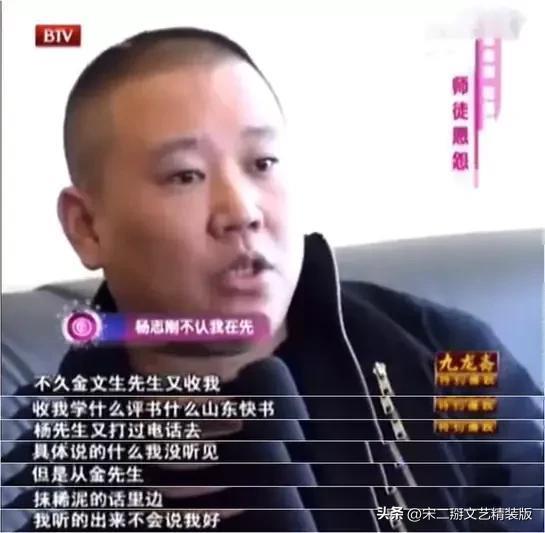 之后,有一个叫金文声的先生准备收郭德纲学评书和山东快书,结果杨志刚一个电话打过去询问,对方对郭德纲的态度就变得微妙起来。"具体说什么我没听见,但是从金先生和稀泥的话里面,我听得出不是说我好。时隔多年听到这么一个消息,他都能打电话过去说,让我觉得非常寒心。"