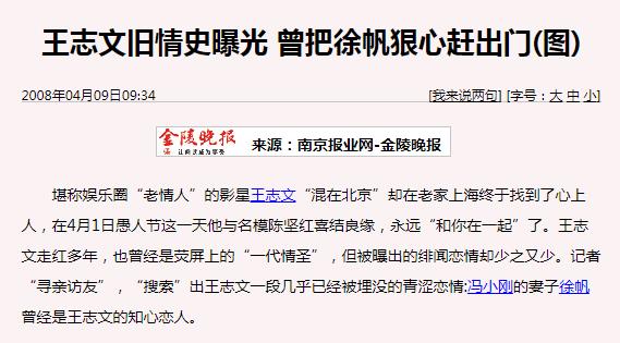 徐帆当然说没有关系,但是王志文偏偏信了人们口中的传闻。