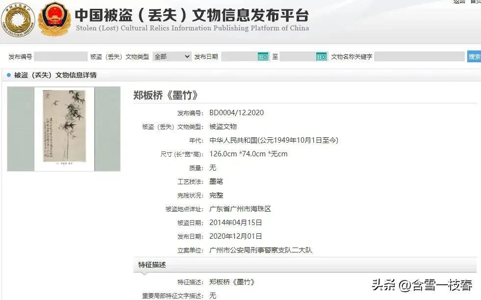 几位校友迅速向学校举报。学校经过调查后,确认系藏馆内的被盗名画,马上向广州市公安局番禺分局报案。