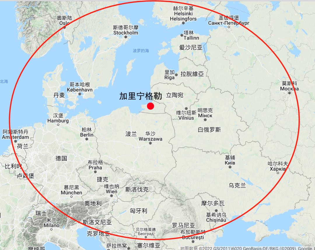 与此同时,地处“欧洲中心”的柯尼斯堡,也让苏联拥有了一个不可多得的进攻基地。如果以这里与莫斯科的距离(大约1100千米)为半径画圆,柏林(德国)、奥斯陆(挪威)、斯德哥尔摩(瑞典)、阿姆斯特丹(荷兰)等十多个欧洲国家的首都将尽数囊括在内。动用导弹从柯尼斯堡打击这些地方可以说是轻而易举。如今面临北约东扩压力,俄罗斯几次扬言将在这里布置导弹/核武器,也正是看中了这里的优越地理位置。