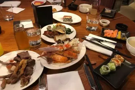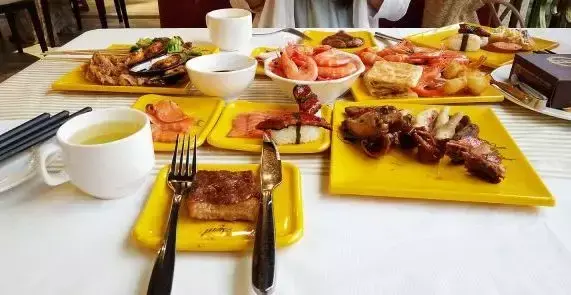 这家餐厅,吃的不但是食物,更是环境!它坐落在CBD中,360°无死角俯瞰广州繁华的街景。就餐时会有小提琴演奏,十分enjoy~菜品样式也是超级多的,西餐形式为主,刺身寿司、海鲜、牛扒、港式粉面全部都有。龙虾有芝士龙虾,一定要试试,龙虾和生蚝是限量的,不能无限续吃,可见食材的宝贵。(其它任吃)