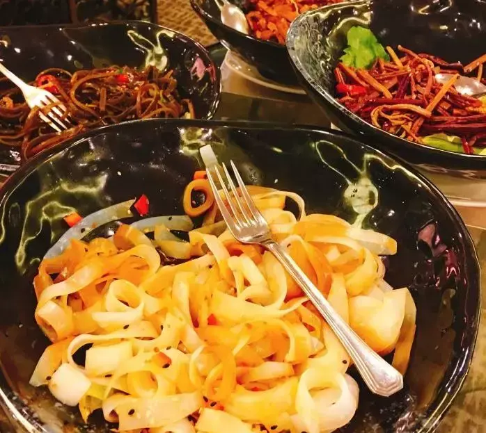虎皮尖椒、素春卷,一定要试!在这里,连点心都做得很艺术。
