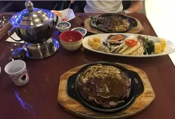 这是一家以吃扒为主的餐厅,只要你点一份扒,不论任何价格,就可以吃这里的所有自助餐。甜品、海鲜、蔬果、饮料都是自助选择的主要内容,其中台式炒饭,澳洲雪花牛,烧鸭是必吃的人气菜。