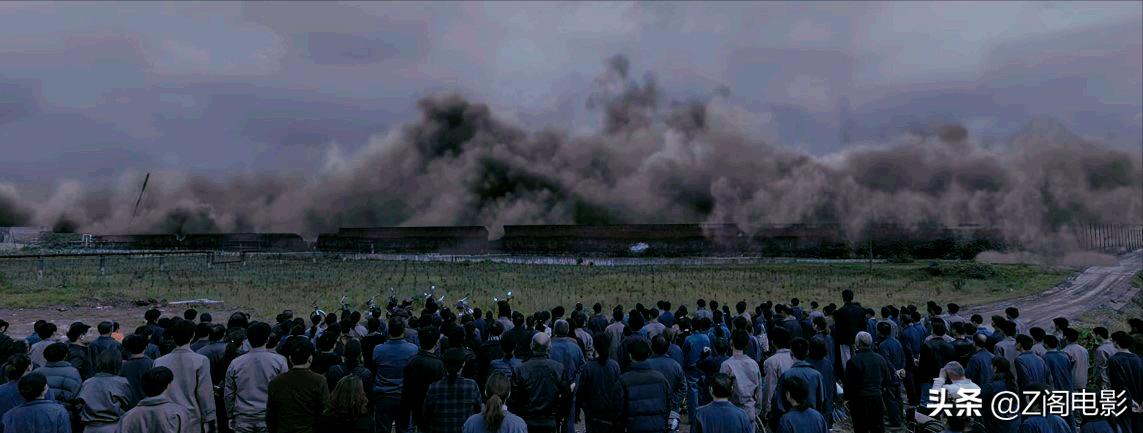 当余国伟来到旧厂爆破现场,在场的人依旧穿着曾经的衣服,甚至还有工作服,年龄老了,他们曾经的时代也随着这一声爆破烟消云散,只留下一片狼藉跟永远的回忆!