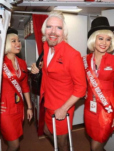 为了推广自己的品牌,他曾全裸出演自己公司的广告;他用坦克开进美国时代广场推广维珍可乐;为了推广维珍婚纱,他刮了胡子穿上婚纱;他曾飞到新德里,骑着一头白象在印度国会演讲;他曾和朋友打赌F1车队积分高低输了,穿着空姐制服,在客机上服务客户。