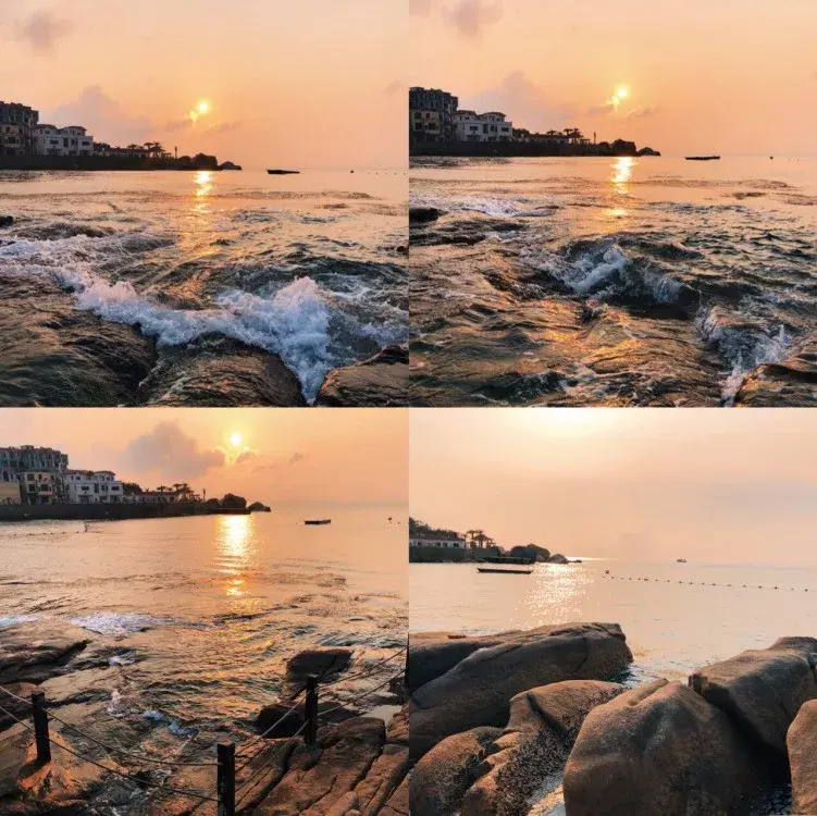 岛上还有无数巨大的礁石,坐着礁石上吹吹风,夕阳西下,晚霞余晖洒满了整个海滨,小岛沉浸在一片祥和之中。