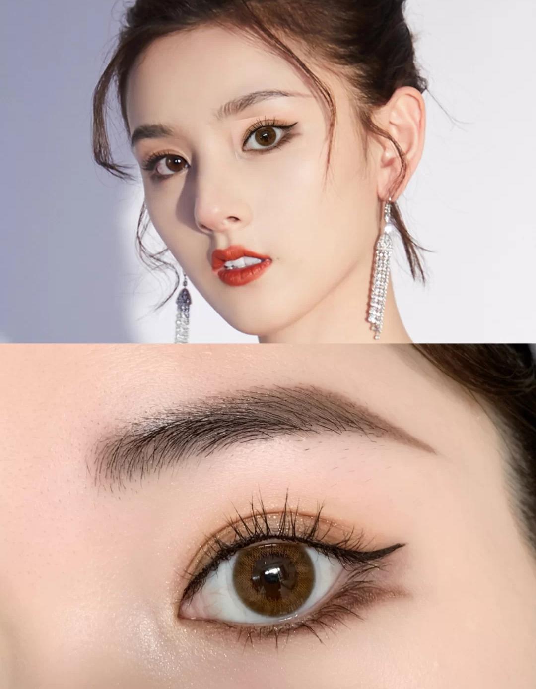 赵丽颖就是典型的圆眼睛,也称荔枝、大眼。睑裂比较高宽,睑缘是圆弧形,绿色眼珠眼白漏得比较多,是眼睛显得更加圆。这样的眼型其实对眼距和眼睛的眉毛的宽度要求较高,否则会显得五官局促,或者五官分散。