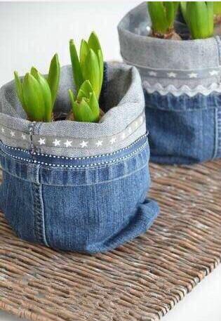 牛仔废裤脚挽起装上土就能完美种盆栽了,欣赏力满分。
