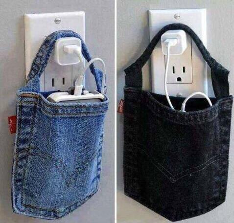 这个是牛仔裤兜的大用处,许多小伙伴们特地准备小小的收纳袋来面对上图中的手机在充电时无处安放的情况,可现在自己动手一个裤兜就能完美解决。
