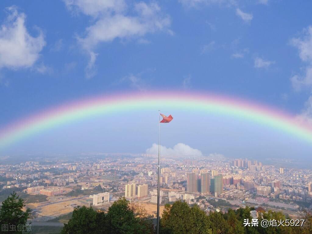 大雨过后,天边惊现一道美丽的彩虹,七色虹桥,筑起多少童年七彩的梦想。其实彩虹是一种光学现象,在大雨过后,由于地面温度较高,把雨水蒸发形成水蒸气,空气中的小水珠遇到太阳光的照射,造成色散及反射而成形成七彩虹桥,也就是我们见到的彩虹。
