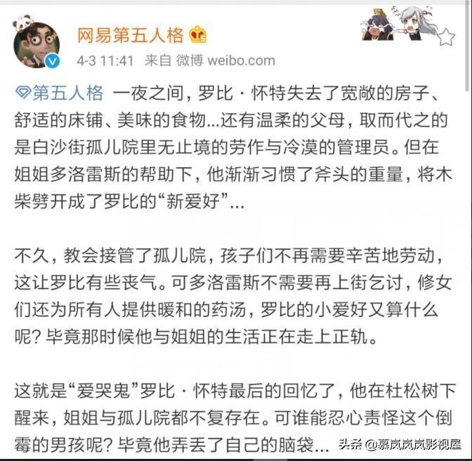 总的来说,“爱哭鬼”可以说是第五人格有史以来最悲惨的监管者了,他来庄园的目的或许只是想找回身体失去的部分。各位第五的小伙伴,对新监管者怎么看,期待你的评论和观点