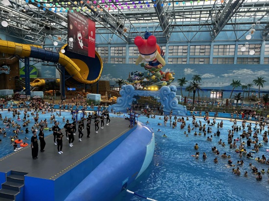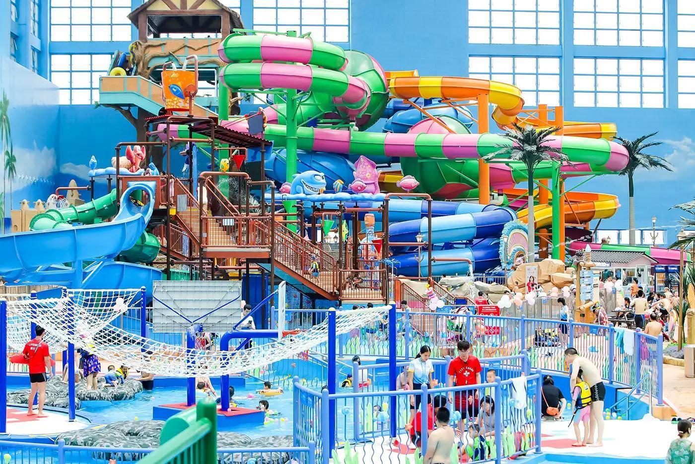 大型的娱乐活动场所,室内外泳池、精彩水上演舞台、高速滑道、美食广场、商场等应有尽有。