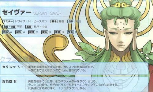 Saver,救世主,目前仅在Fate/EXTRA中出现,真名为觉者,实力在常规七职介之上,疑为释迦摩尼。