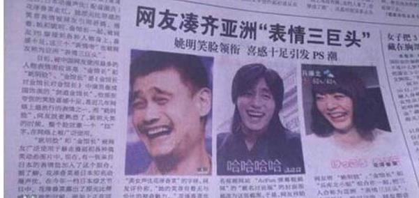 曾经还有报纸刊登了她跟姚明还有金馆长的三个笑脸。被称为亚洲表情三巨头。