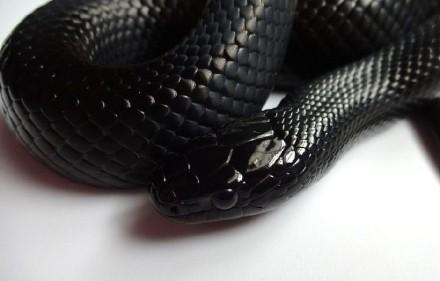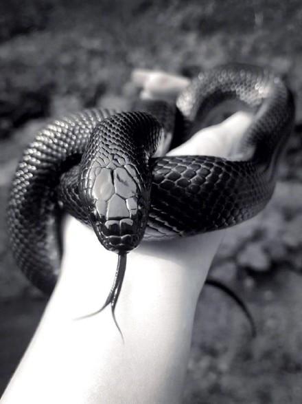 黑王蛇除了腹部等处有一些乳白色的点,其他全身都是黑色,超级酷。它就好像是小说中的霸道总裁一样,虽然很酷而且坏人们都怕他,但是他只对你一个人温柔。