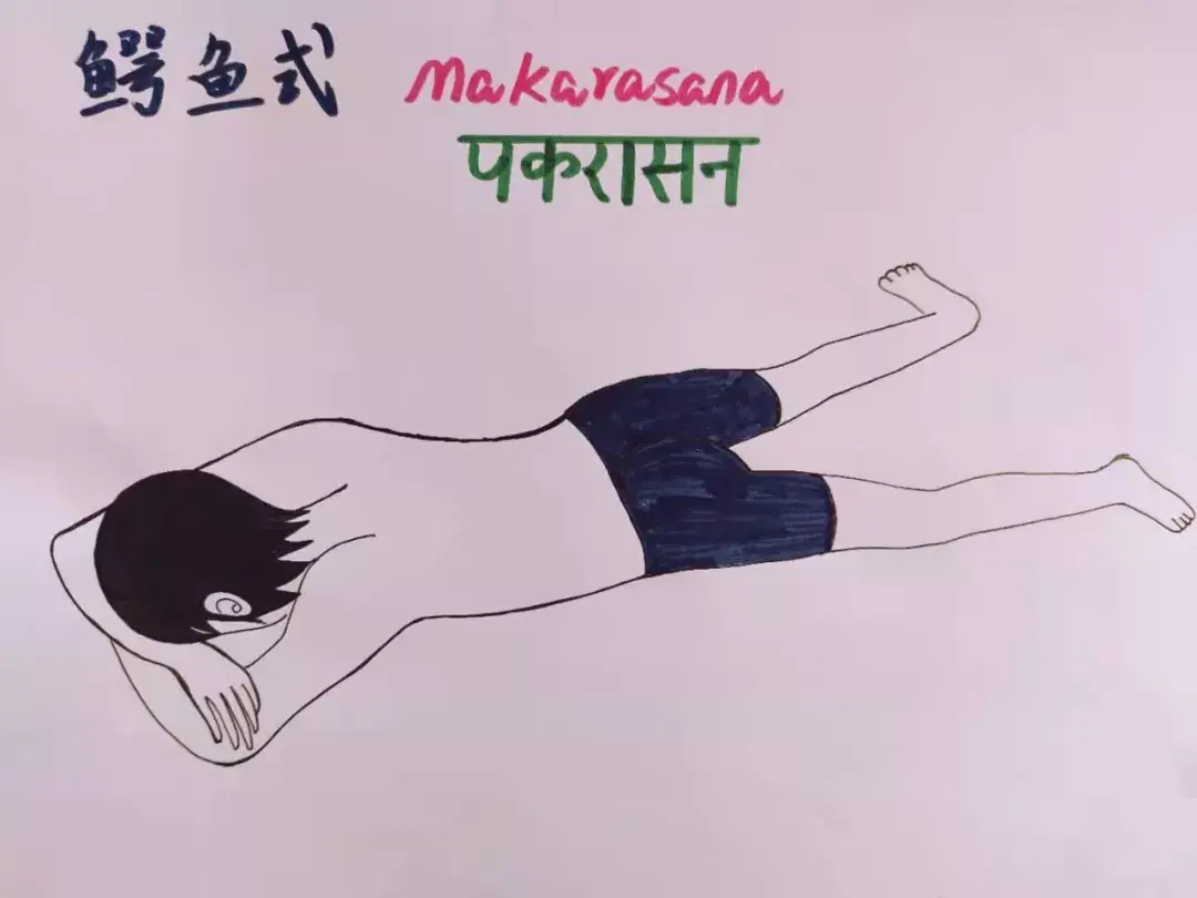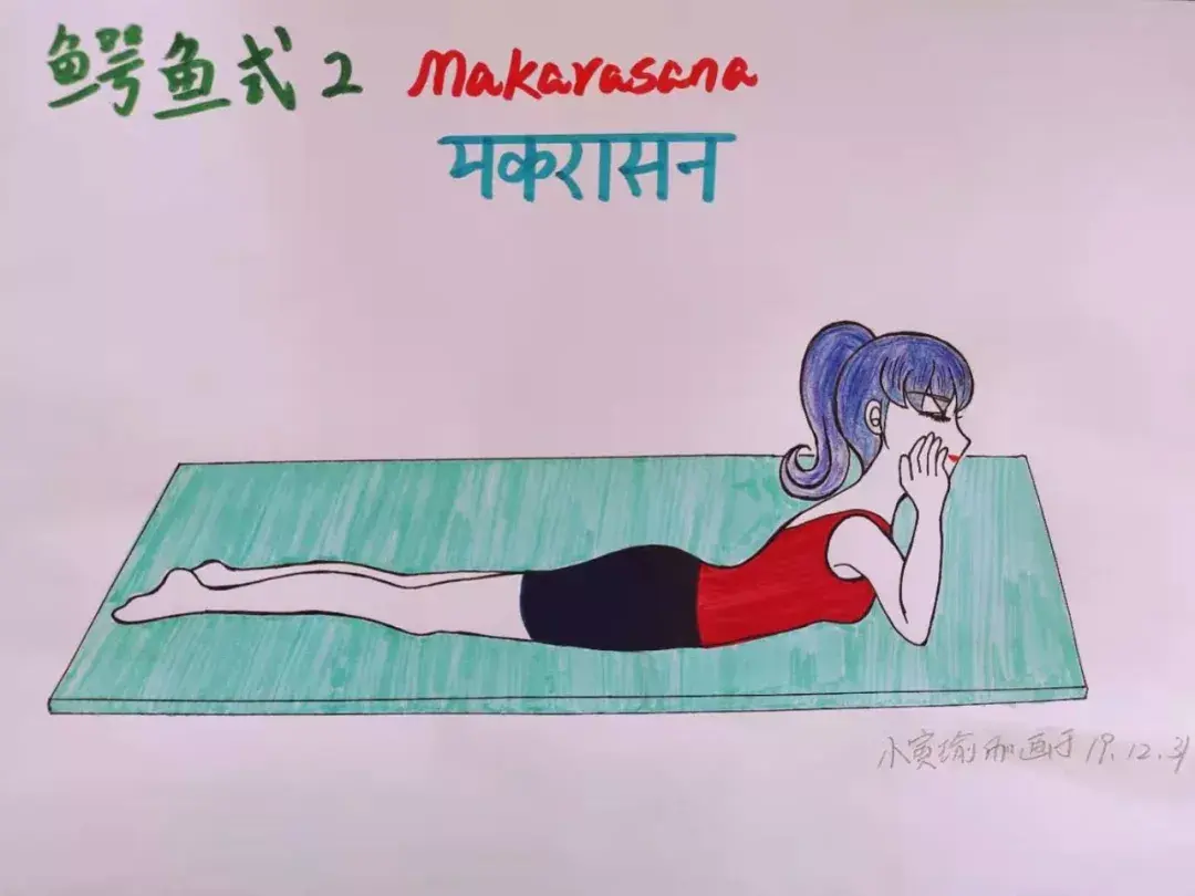 该体式来自梵语“म kara ” makara,意为“鳄鱼” ,同时也会被翻译成鲨鱼,是恒河女神瓦哈娜的坐骑。