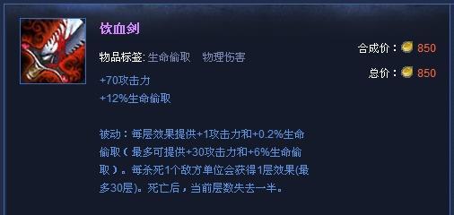 饮血改了之后就变得有点不伦不类了,还是老版饮血剑厉害!100攻击力,18%生命偷取,强无敌!