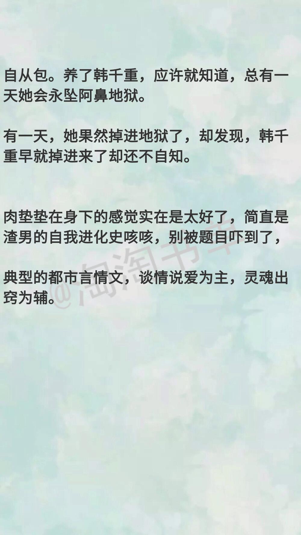 说是女主包养男主。但六年里是女主把男主当大爷一样供着,掏心掏肺啊!