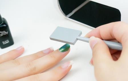 第三步:用磁石洗一下,用这个吸了以后就会出现猫眼的效果啦!所以大家想在家DIY猫眼美甲,这个工具可是必备的哦。