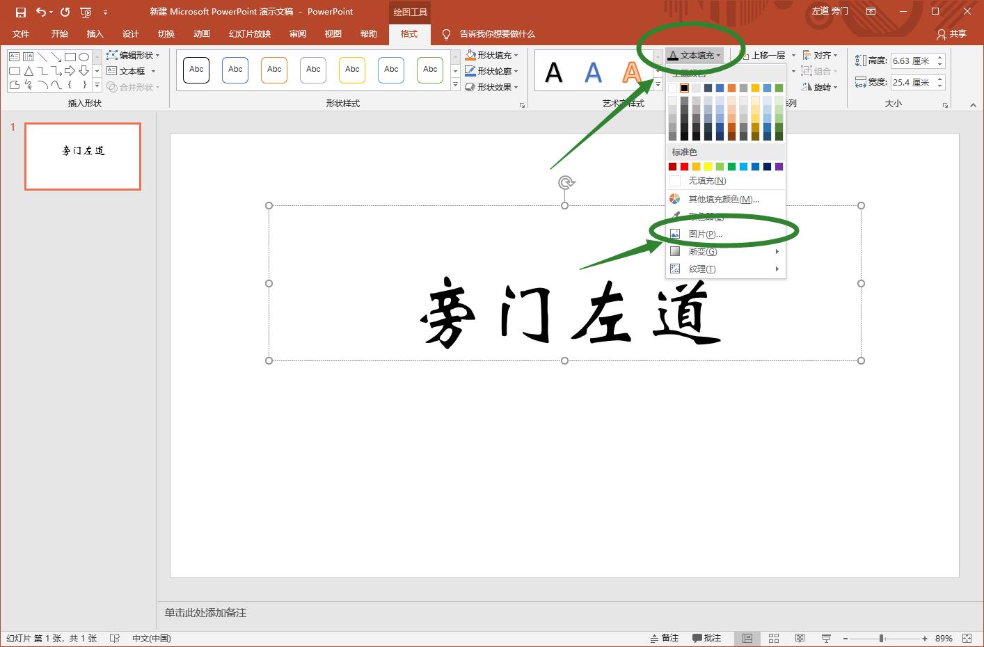 在PPT的菜单栏找到“格式”,选择“文本填充”,点击“图片填充”。
