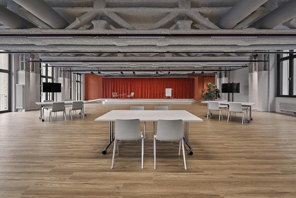 整个空间设计提供了发展的自由和成长的可能性。该设计为创意开发留下了大量空间。作为这里的使用者——员工,被邀请用他们自己的文化和语言充填这宽敞的空间,去创造一个专属于他们的交流和沟通的空间,一个充满学习活力的地方。